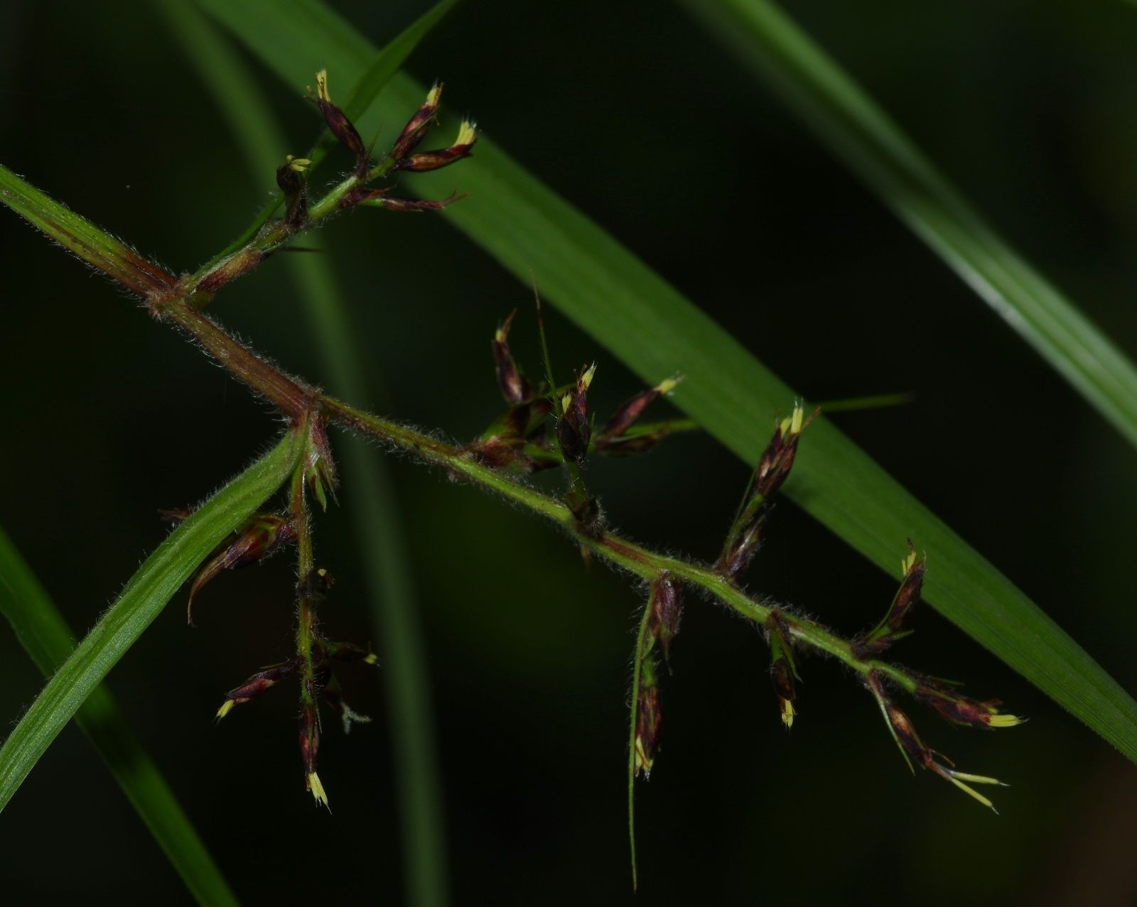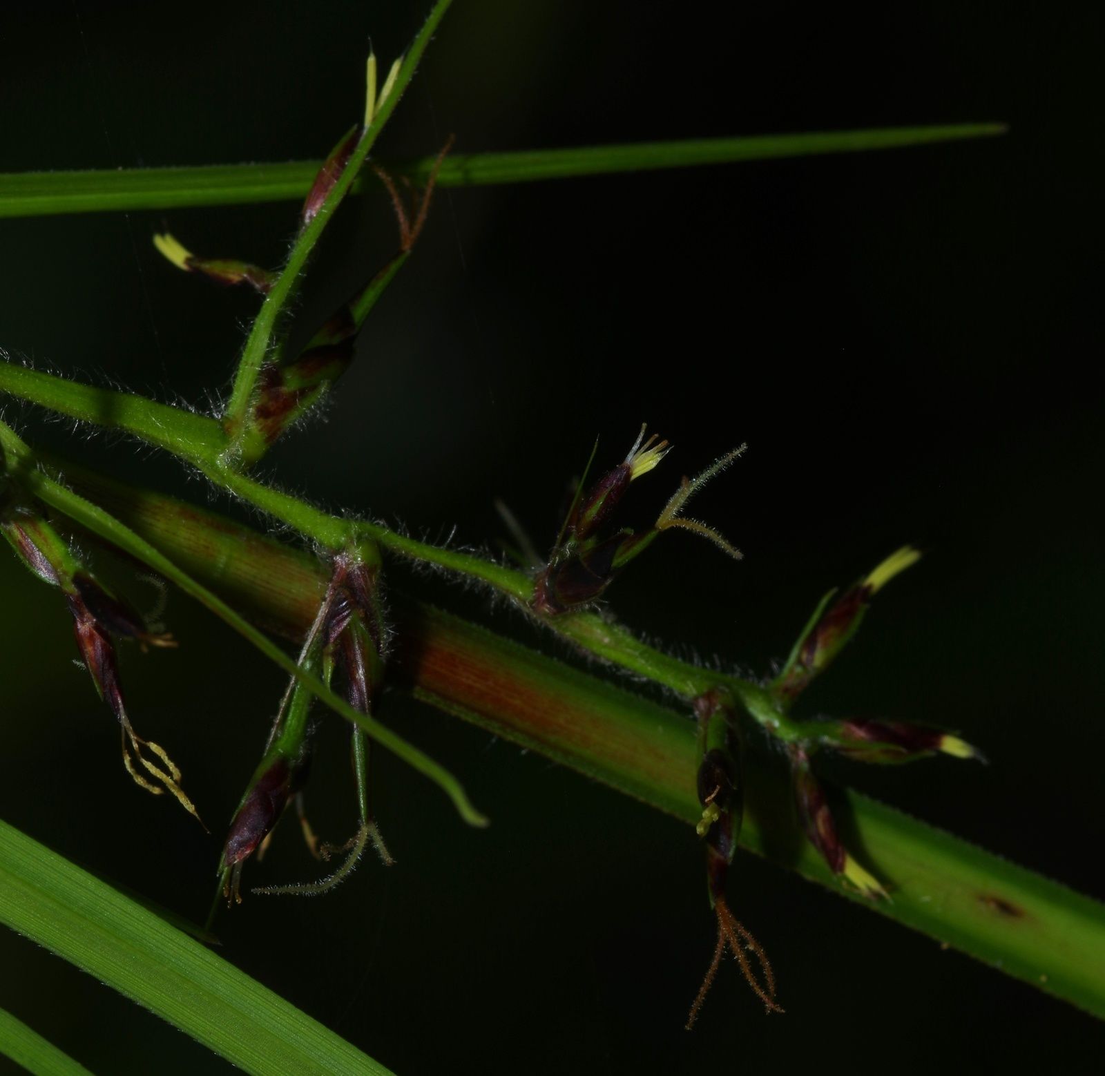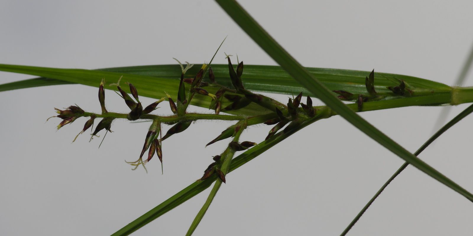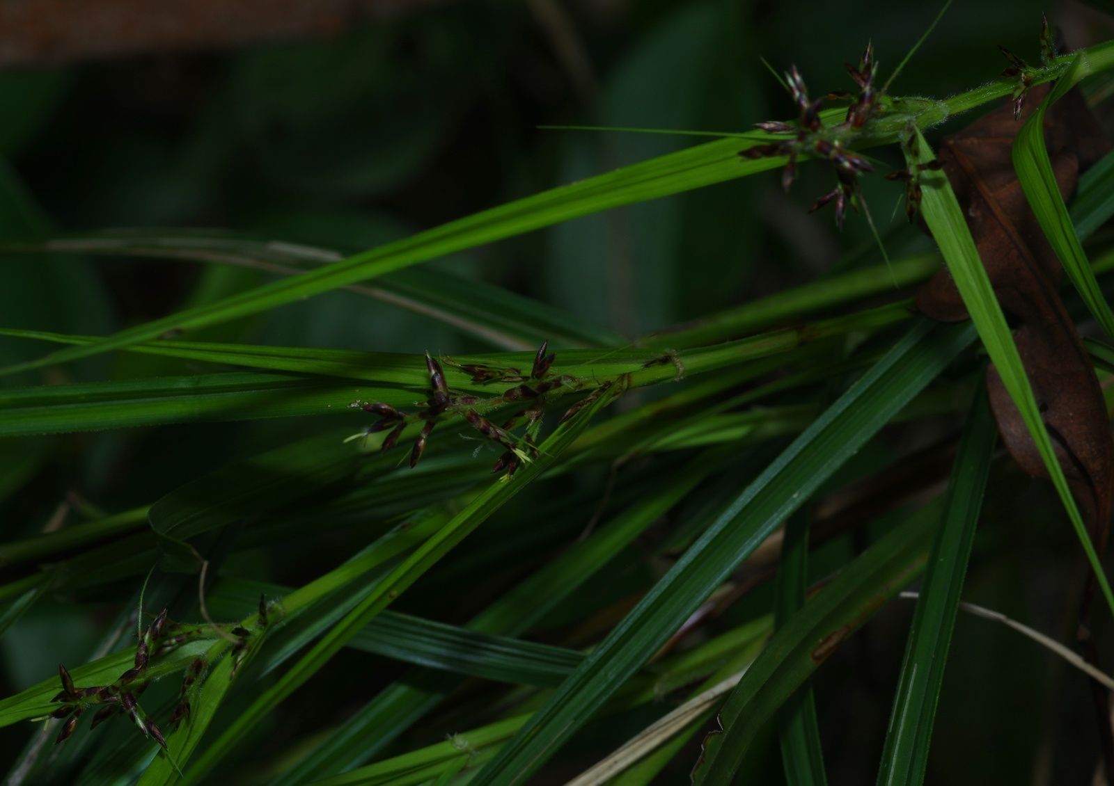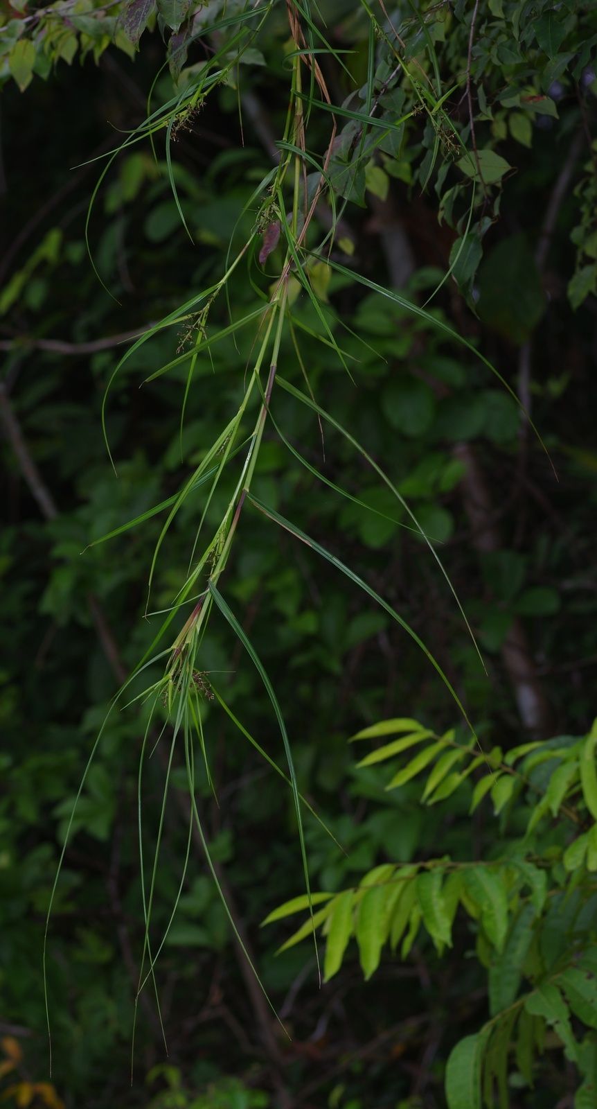 Scleria secans , liane de lisière forestière aux longues feuilles munies de petites dents recourbées vers l'arrière qui laissent de douloureux souvenirs sur les bras des promeneurs distraits...