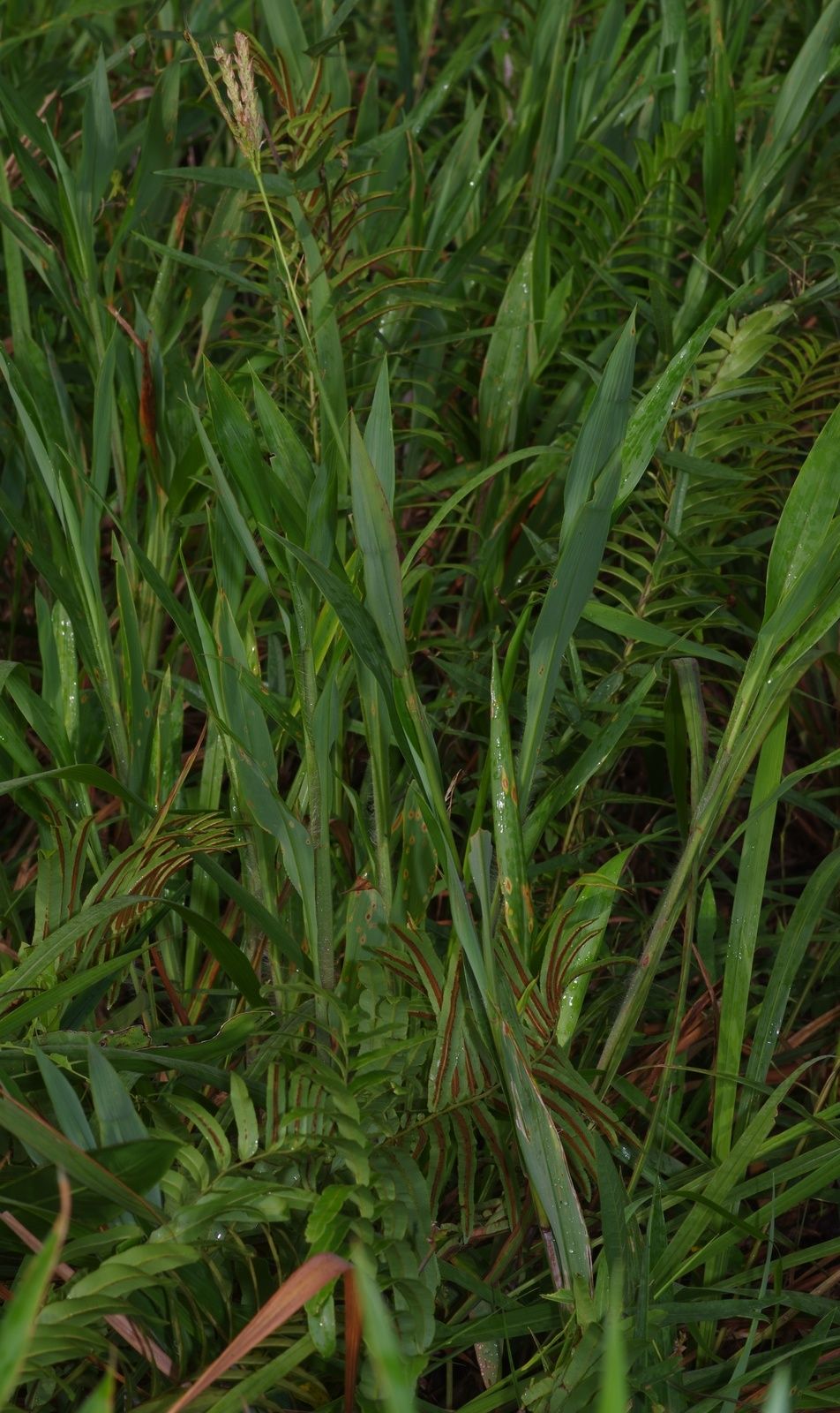 Ischaemum guianense, plante de bas-fonds de savane mesurée jusqu'à 1,50 m de haut, inflorescence de 2 à 5 racèmes.