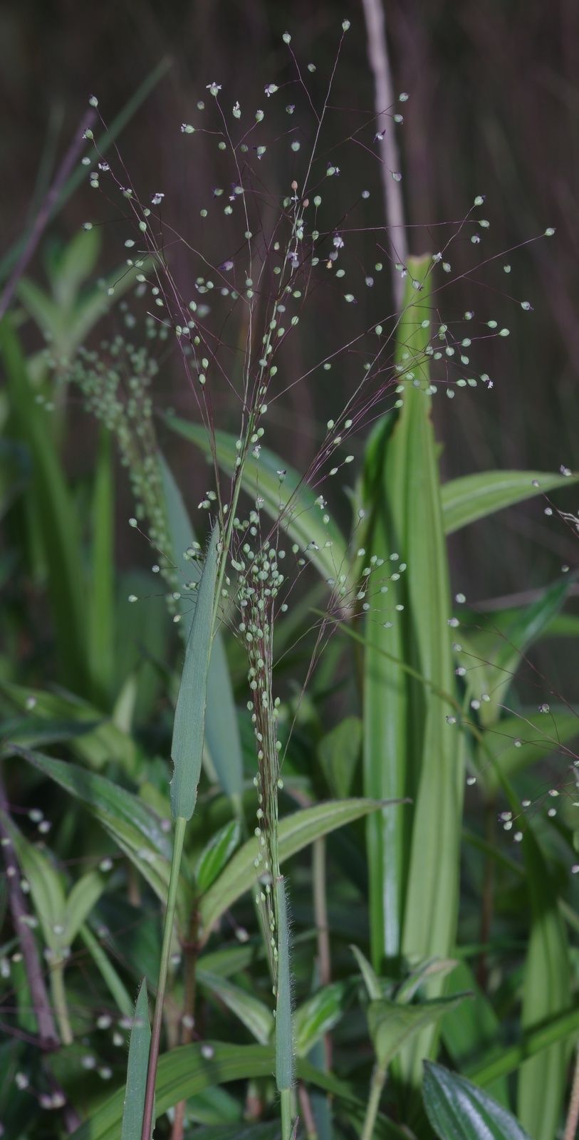 Trichanthecium cyanescens ( syn : Panicum cyanescens ) , plante commune de savane jusqu'à 85 cm de haut, feuilles à gaine plus courte que les entre-nœuds parfois très pubescente parfois glabre, limbe lancéolé pouvant être pubescent sur les 2 faces.