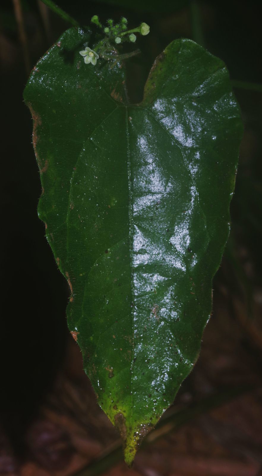 Helmontia cardiophylla Publié le 27 décembre 2018 par La Chaussette Rouge Helmontia cardiophylla , liane entièrement pubescente, feuilles à limbe ové à base cordée, inflorescences en racèmes, fleurs verdâtres. lieu : sentier des Monts La Fumée, Saül / date : 23 juillet 2018
