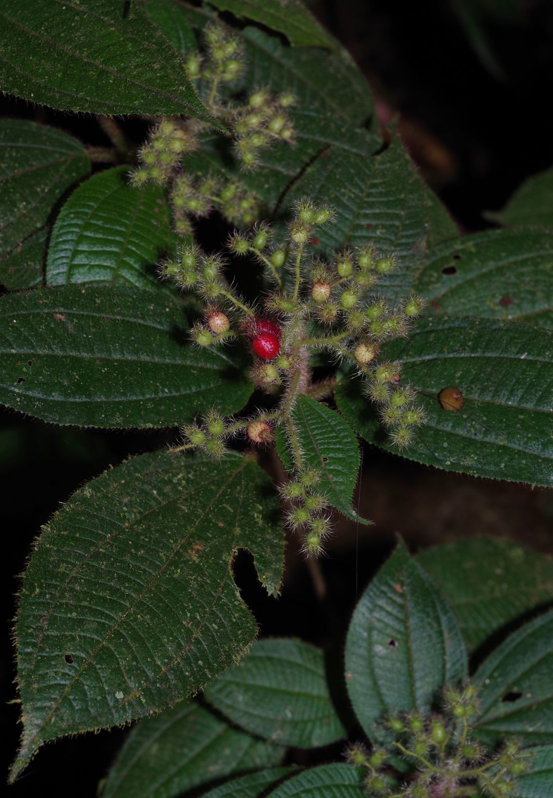 Miconia agrestis Publié le 29 mai 2019 par La Chaussette Rouge Miconia agrestis (syn : Leandra agrestis), arbuste du sous-bois complètement hirsute pouvant dépasser 1 mètre de haut, fruits rouges. lieu : sentier Grand Bœuf Mort, Saül / date : 27 avril 2019